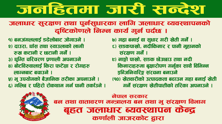 जाजरकोट । वन डढेलो व्यवस्थापन सप्ताह २०८२ अन्तर्गत मा वन डढेलो नियन्त्रणसम्बन्धी स्थलगत कृत्रिम अभ्यास कार्यक्रम सम्पन्न गरिएको छ। डिभिजन वन कार्यालय जाजरकोटको आयोजनामा भेरी नगरपालिका १ र ३ क्षेत्रमा पर्ने...