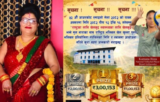जाजरकोट । पुस १२ देखि १६ गते सम्म खलंगाको थाप्लेचौरमा भव्य रुपले सन्चालन हुन लागेको ५३ औं रमाइलो मेलाको अवसरमा आयोजना गरिएको जाजरकोट दरवार कप खुला भलिवल प्रतियोगिताको तृतीय पुरस्कार...