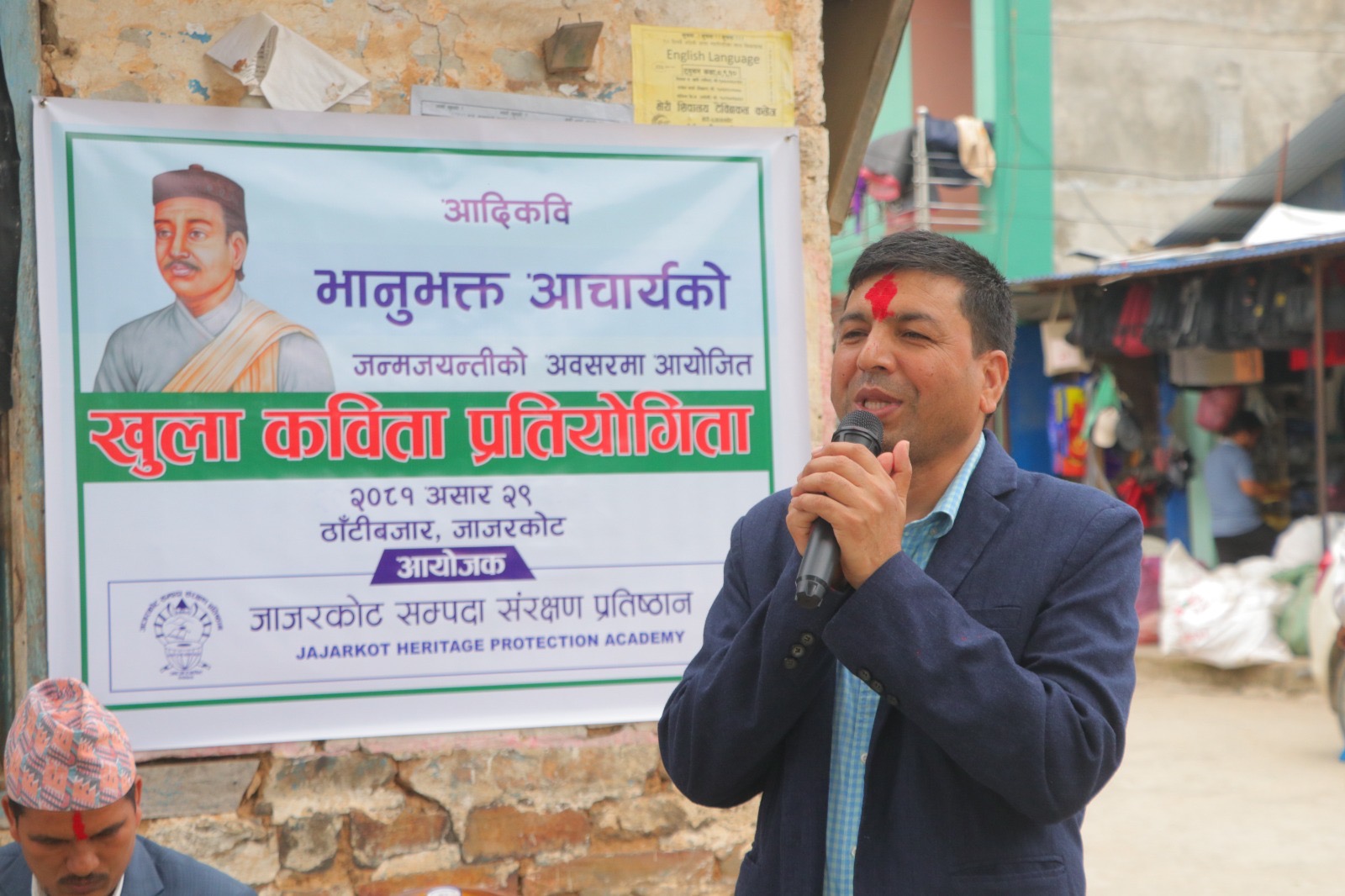 यस्तै कार्यक्रममा आदि कवि भानुभक्तले नेपाली भाषा र साहित्यको क्षेत्रमा पुरयाएको योगदानको चर्चा गर्दै जाजरकोटका अज्रज साहित्यकार हरि सन्दर्भले भानुभक्त नभएको भए नेपाली भाषाको पहिचान सम्भव नहुने वताए । उनले युवाकवि मोतीराम भटट मार्फत चिनिएका आदिकवि भानुभक्तले नेपाली भाषाको संरक्षण र विकासमा अमुल्य योगदान दिएको वताए ।