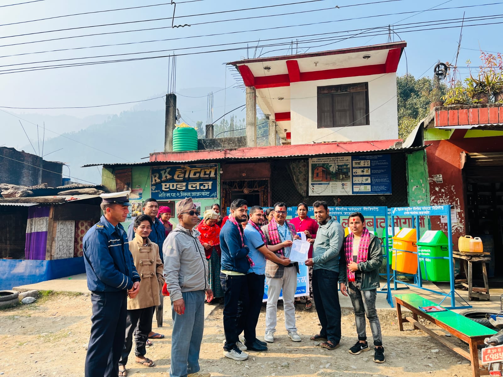 जाजरकोटमा छिमेक लघुबित्तलभ डीस्टबिन हस्तान्तरण गरेको छ । शनिवार जिल्लाको भेरी नगरपालिका १ रिम्ना बजार व्यवस्थापन समितिलाई डस्टबिन हस्तान्तरण गरेको हो । सामुदायिक सरसफाइ तथा वातावरण संरक्षण अभियानलाई प्रभावकारी बनाउने उद्देश्यले छिमेक लघुवित्त वित्तीय संस्था जाजरकोट शाखाले डस्टबिन हस्तान्तरण गरेको सुदूर तथा कर्णाली प्रादेशिक कार्यालयका अनुगमन अधिकृत तपेन्द्र साउदले बताए । रिम्ना बजार क्षेत्रमा बढ्दो फोहोर व्यवस्थापन समस्यालाई ध्यानमा राखी आयोजित कार्यक्रममा सुदूर तथा कर्णाली प्रादेशिक कार्यालयका अनुगमन अधिकृत साउदको प्रमुख आतिथ्यतामा कार्यक्रम सम्पन्न भएको थियो ।